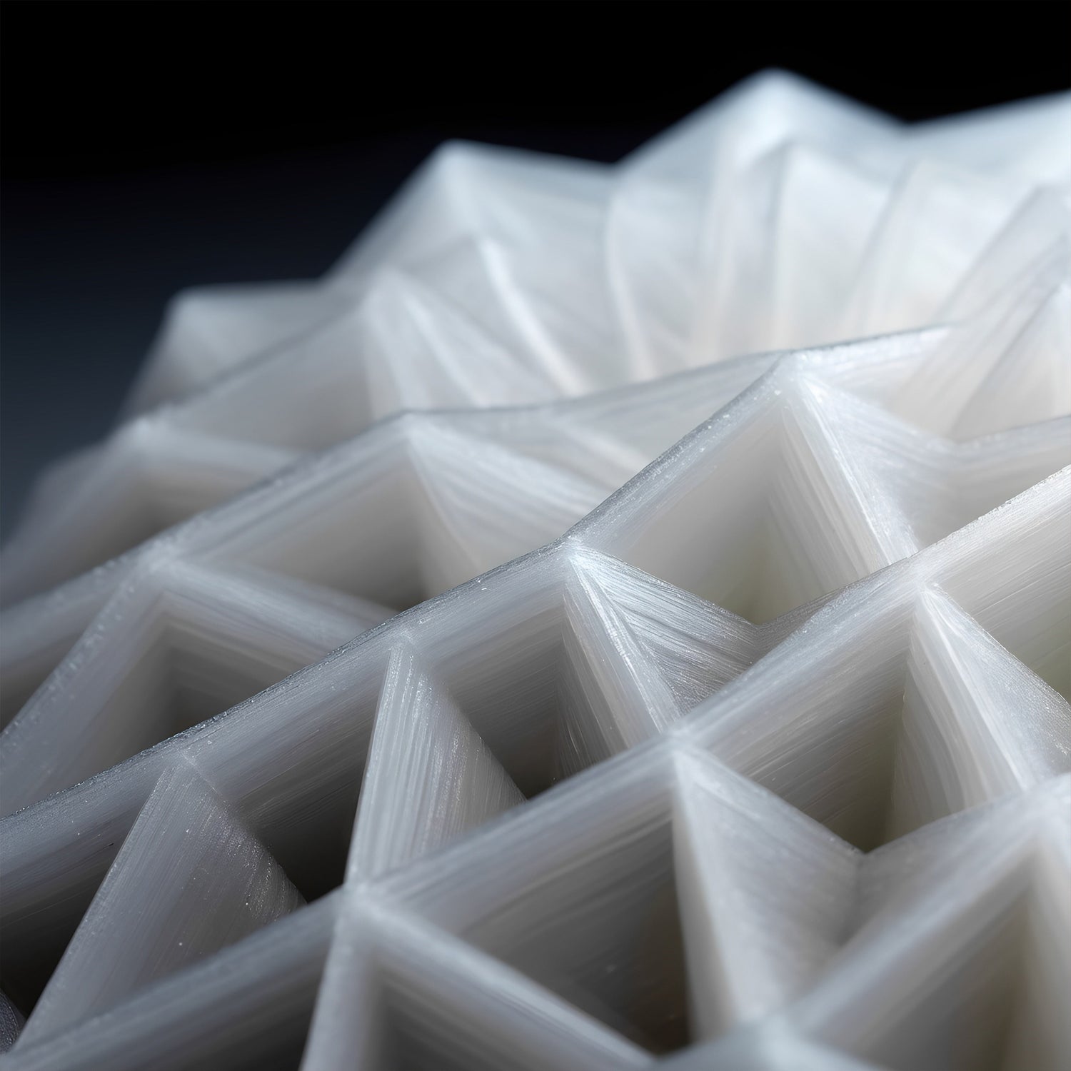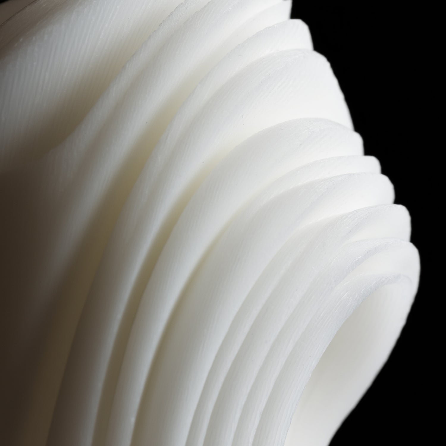 Our materials combine innovation, precision, and design excellence, offering bespoke solutions for lighting, furniture, and architectural applications. Each material is carefully developed to provide both functional performance and striking aesthetic impact. Our translucent and natural polymers allow for exceptional light diffusion, while engineered finishes, such as matte black, deliver smooth, glare-free surfaces ideal for controlled lighting applications. Materials like white sugarcane-based polymers offer durable, lightweight, and visually striking options that can be sculpted into complex, bespoke forms. Metallic sheens, shimmering textures, and semi-transparent or solid finishes further expand design possibilities, enabling statement pieces that are as robust as they are beautiful. Developed with sustainability and precision in mind.