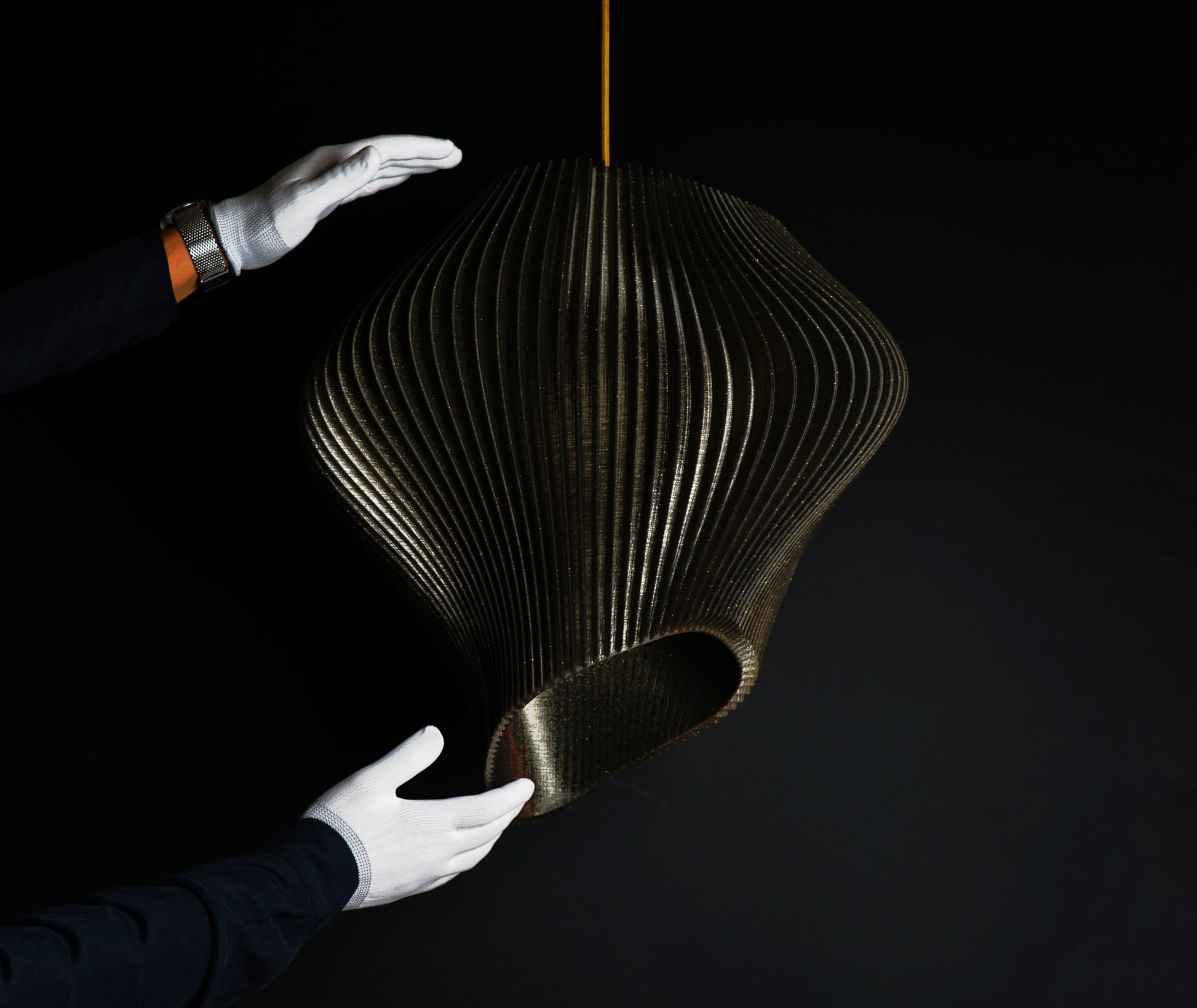 The Cosmic Black Wave Pendant Light is a custom-crafted, sculptural ceiling fixture designed for clients who demand exceptional artistry and refined elegance. Inspired by the fluid motion of waves and adorned with subtle gold speckles that catch the light, this pendant radiates sophistication and adds a jewel-like shimmer to any interior. Each piece is handcrafted to order, combining premium materials, thoughtful design, and sustainable practices to create a statement light that is both functional and visually captivating.