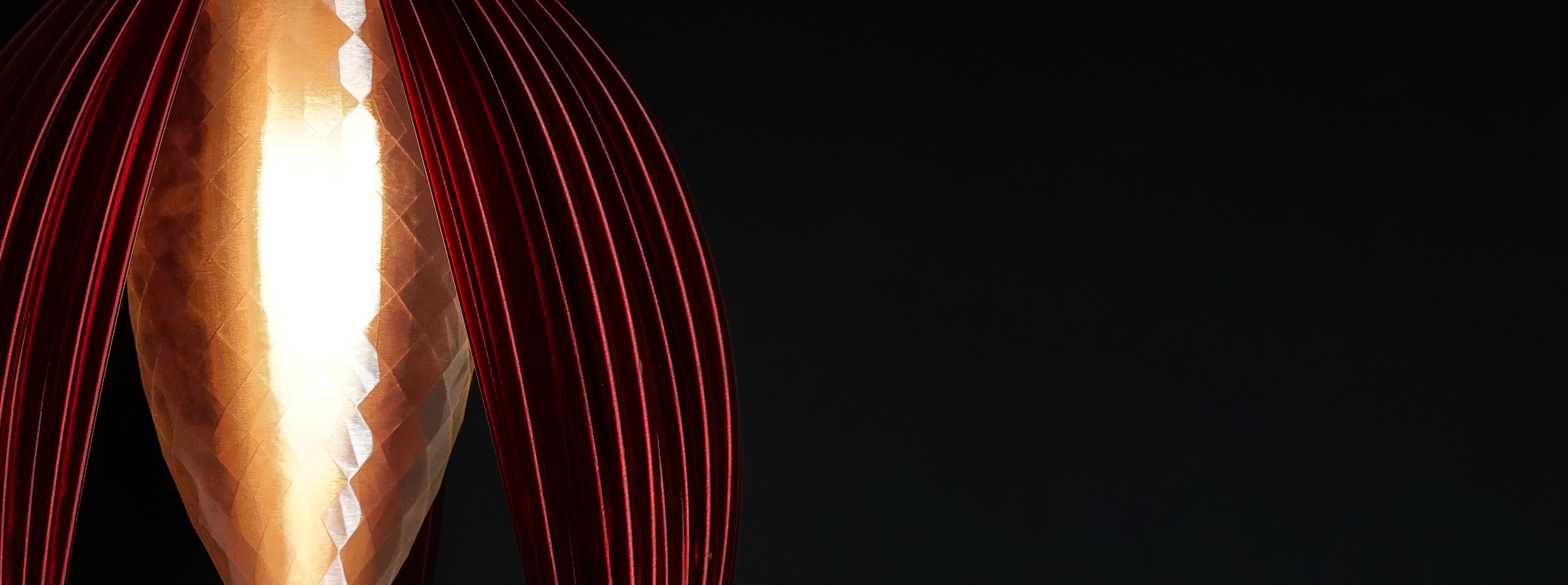 The Amber Bloom Pendant Light is a striking designer ceiling fixture that combines artistic elegance with luxurious functionality. Featuring a crystal-like central element reminiscent of a diamond, this pendant creates a dazzling focal point in any space. Three gracefully arched petals extend outward in a rich burnt amber finish, enhanced with a reflective metallic sheen that catches and plays with ambient light for a mesmerizing effect.