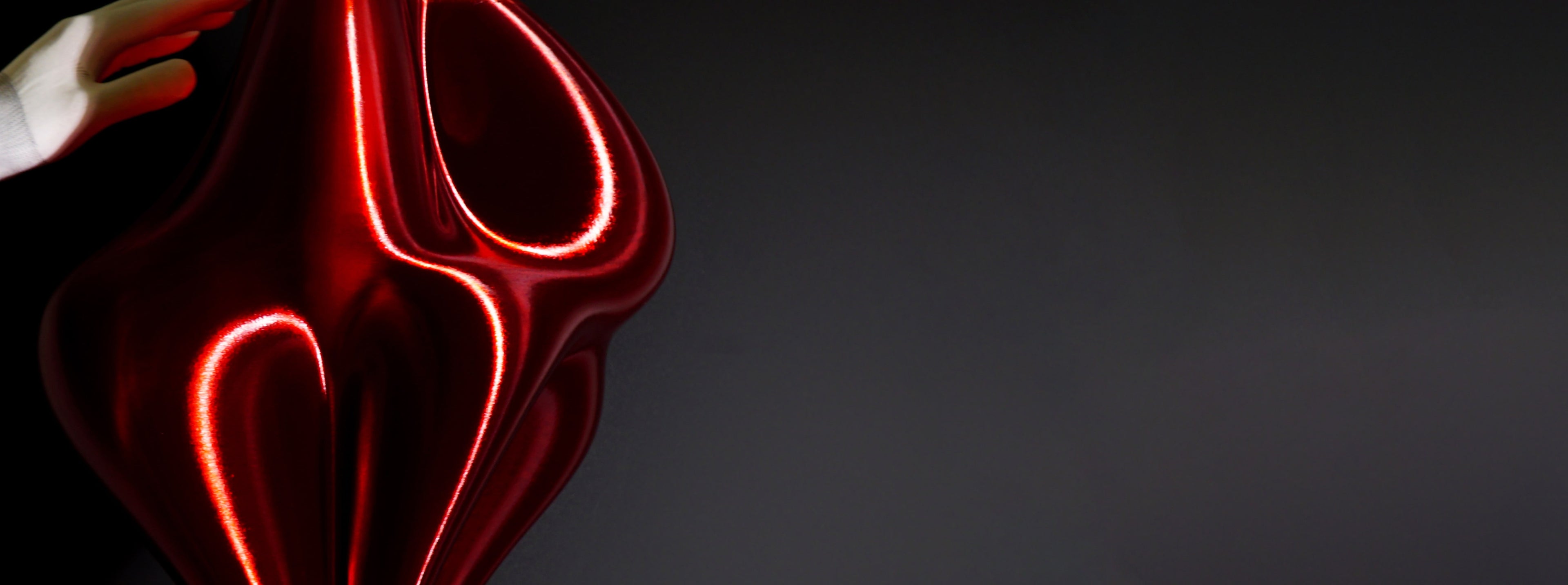 The Flo Pendant Light is a sculptural ceiling fixture defined by its fluid, flowing form and deep crimson red finish. Its surface carries a subtle metallic sheen that catches the light beautifully, giving the pendant a dynamic presence that shifts and shimmers from every angle. The organic curves of the shade evoke a sense of movement, as if the pendant itself is gently dancing, creating a captivating focal point in any interior.