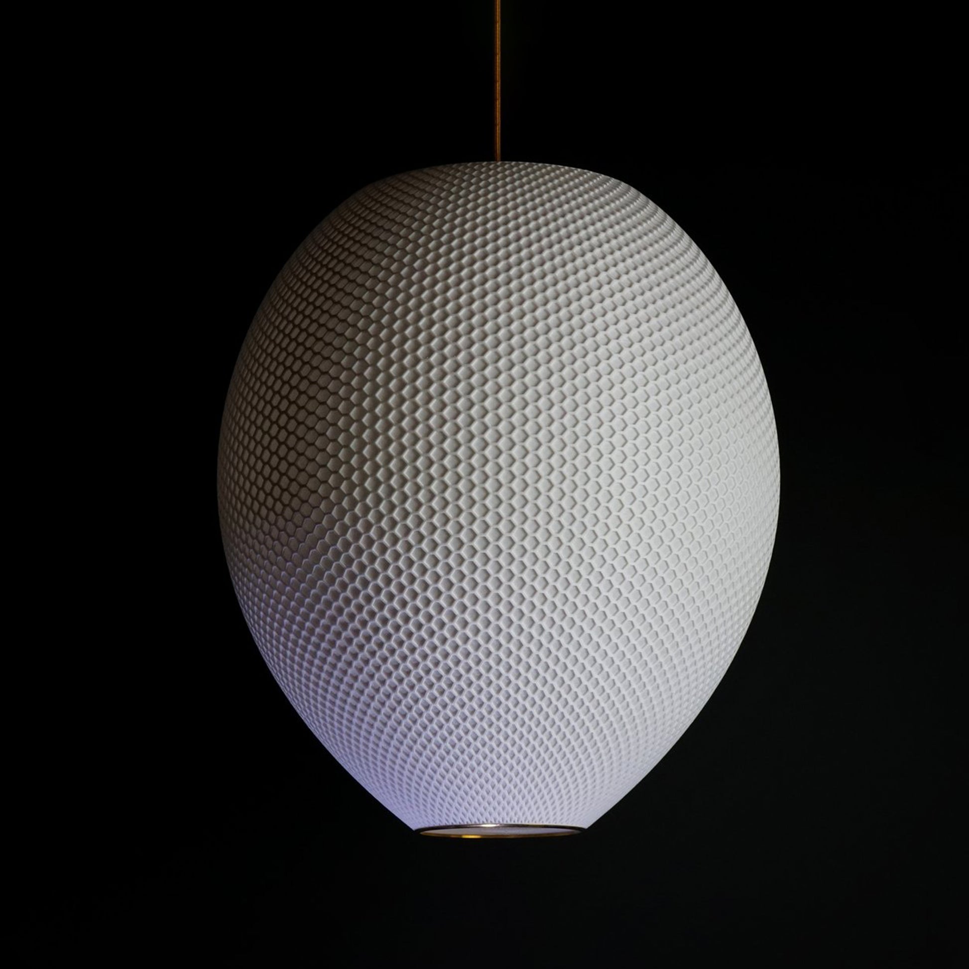 The White Hive Pendant Light is a striking sculptural fixture that celebrates geometric elegance. Its rounded form is adorned with a distinctive hive pattern, creating an intricate play of light and shadow when illuminated. The layered structure of the pendant adds depth and dimension, transforming a simple ceiling fixture into a dynamic focal point.