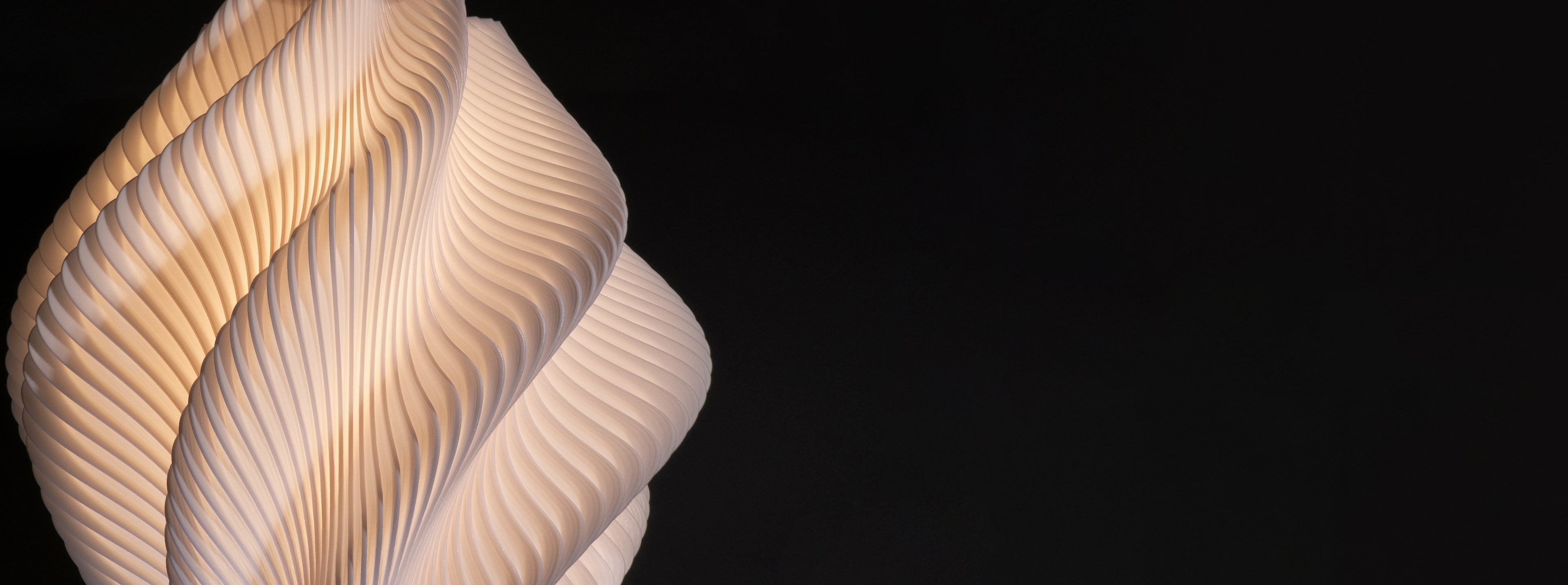 Crafted with precision, the ribbed surface enhances its architectural presence, adding depth, texture, and movement that capture attention from every angle. As light passes across the spiraling form, the pendant reveals shifting highlights and shadows, creating a sense of fluid motion suspended in the air.